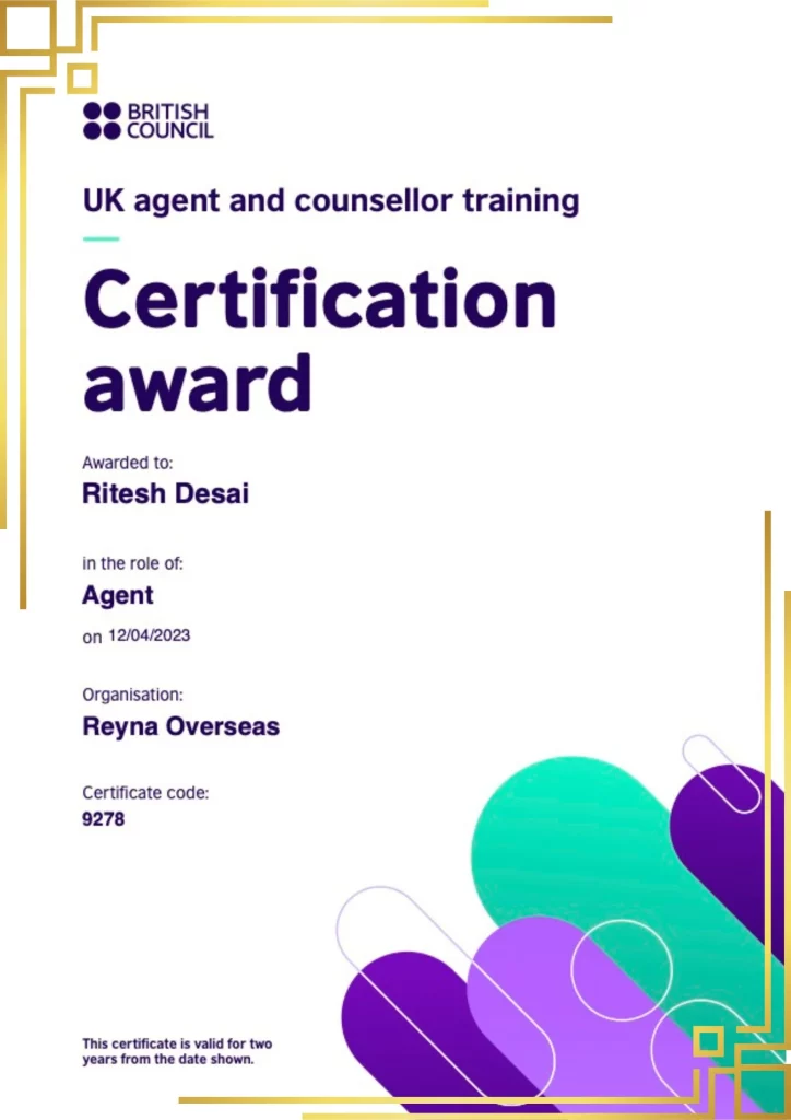 Reyna Overseas Ahmedabad is more than a overseas consultancy; it’s your partner in achieving your global aspirations. With our personalized guidance, expert training, and reliable support, we ensure your journey is smooth and successful. Our proven track record and commitment to excellence make us a trusted name in the field. Start your journey with us today, embrace new opportunities, and turn your dreams into reality!